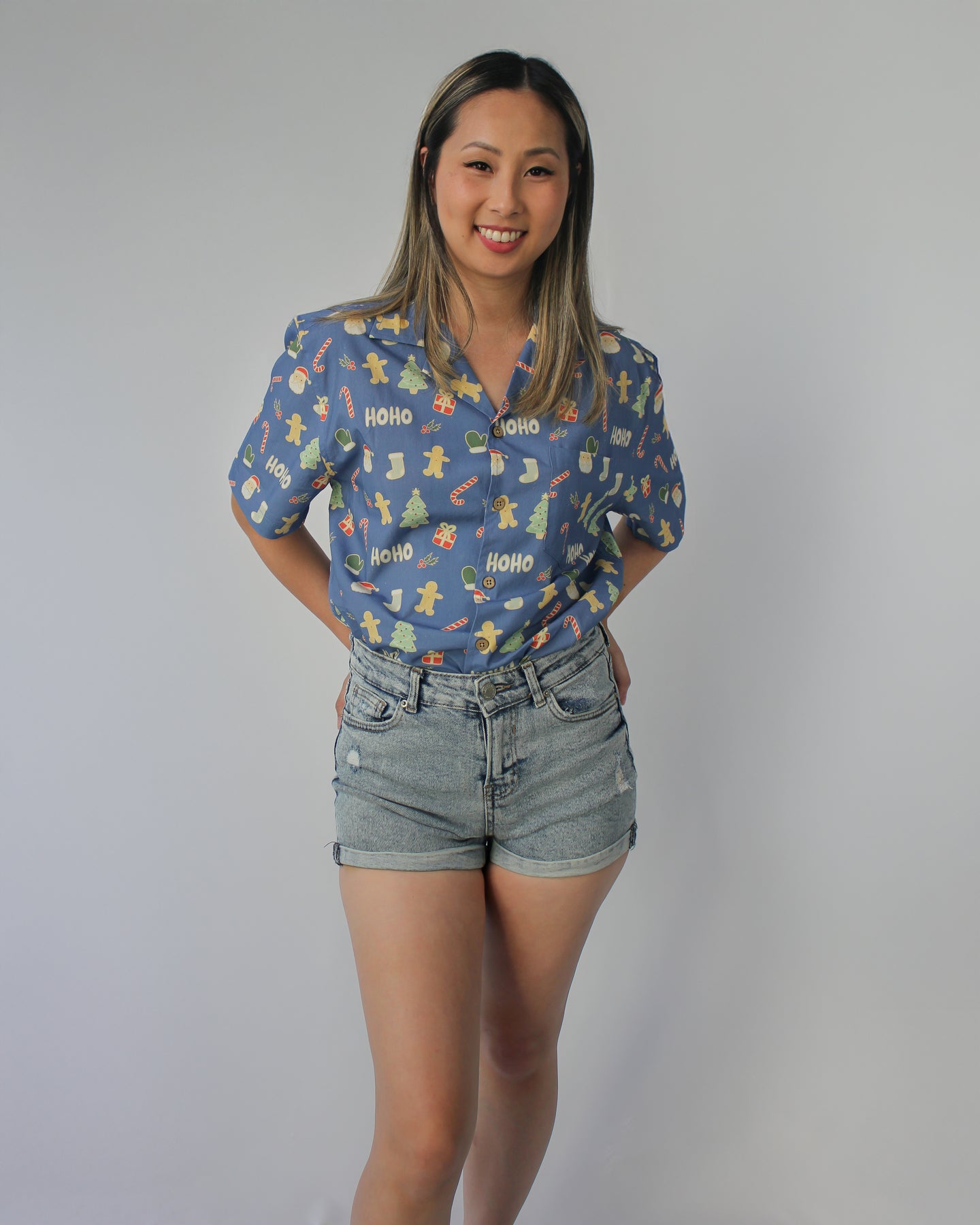 Celebrate Christmas in true Aussie summer style with our Adult Unisex Jolly Blue Festive Shirt. Featuring gingerbread men, candy canes and festive icons across a soft white base, this lightweight button-up brings effortless holiday vibes to every warm-weather celebration.