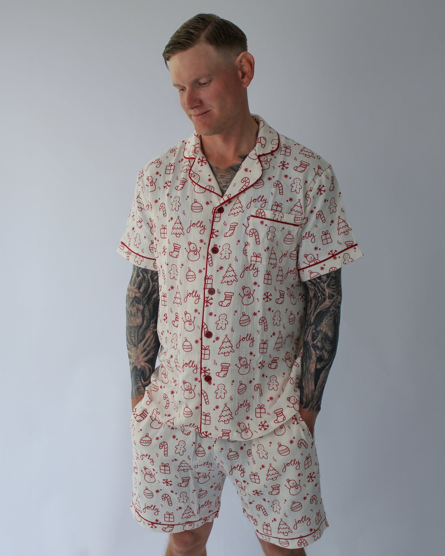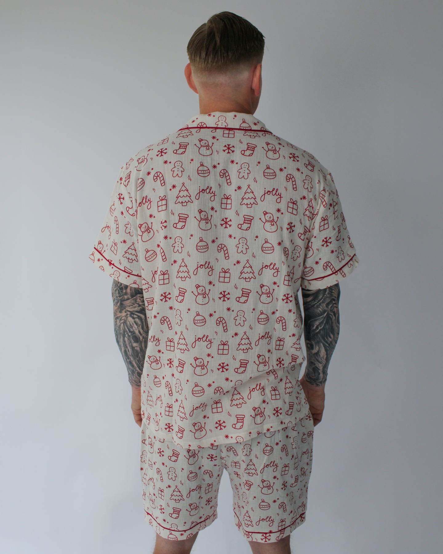 Celebrate the magic of Christmas in comfort and style with our Cherry Cheer Men's Pyjama Set. Designed for creating memories and matching moments, this set features original hand-drawn cherry red Christmas motifs that bring a playful yet classic touch to the festive season.